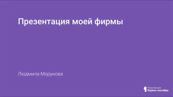 Урок "Презентация моей фирмы" проведен в соответствии с программным материалом курса "Информационные технологии и делопроизводство", ориентированного на учащихся 10-х и 11-х классов. Этот урок направлен на закрепление и обобщение полученных знаний, умений и навыков в области делопроизводства — предпрофессиональной подготовки учащихся к работе по профессии секретарь-референт.