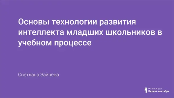 В основе технологии развития интеллекта, базирующейся на любой педагогической концепции, лежит участие ребенка в учебном процессе в качестве субъекта учения.