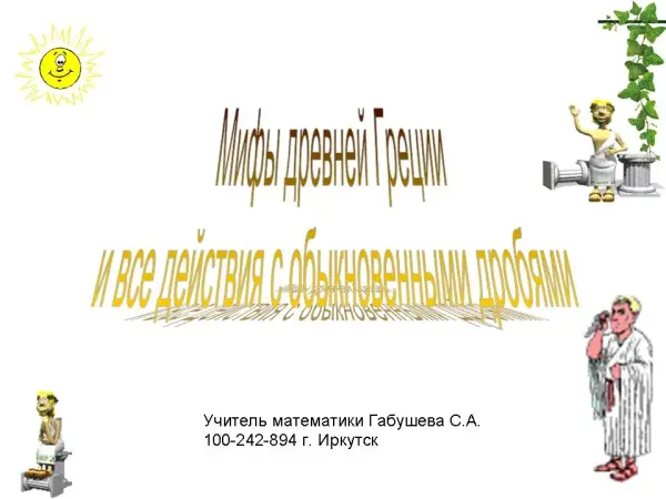 На уроке отрабатываются умения и навыки выполнения арифметических действий с обыкновенными дробями, а также расширяются знания учащихся в математике и мифологии.