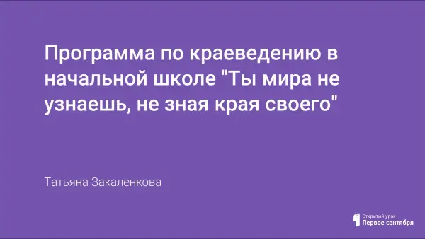 Я работаю 26 лет учителем начальных классов в сельской школе. Каждому человеку хочется вырастить своего ребенка добрым, послушным, привить ему чистоту помыслов и поступков, да только как? Не зря гласит народная мудрость: "Ты мира не узнаешь, не зная края своего". Вся моя внеклассная работа заключается в изучении вместе с учениками истории родного края. Я разработала программу "Люби и изучай свой край", которая включена в учебно-методическое пособие "Моя Родина - Ивановский край" под редакцией Н.С. Волковой.