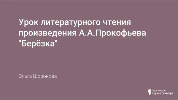 Данный урок является уроком изучения нового материала. Дети знакомятся со стихотворением А.А. Прокофьева "Берёзка". Основной направленностью урока является воспитание патриотических чувств, гражданственности и экологической культуры детей на материале изучаемого произведения и произведений других жанров русской литературы. Урок имеет межпредметные связи с уроками ИЗО, музыки. На каждом этапе урока применяется разноуровневая дифференциация. Атмосфера урока способствует воспитанию дружеских отношений между детьми и позволяет поддерживать связь с людьми старшего поколения.