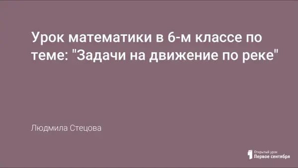 Я работаю по учебнику математики Г.В. Дорофеева, Л.Г. Петерсон. Данный урок "Задачи на движение по реке" является заключительным по этой теме в 6-м классе. Поэтому на уроке ребята показывают уже свои знания и умения, но если кто-то не усвоил что-то по какой-либо причине, то имеет возможность исправить ситуацию, что отмечают на индивидуальных листах самооценки. Слайды, приготовленные к уроку, делают его более наглядным и интересным для ребят. Урок проходит в очень высоком темпе, не требуется много записей на доске (все необходимое для проверки есть на слайде). Но задания для решения учащиеся получают и на бумажных носителях.