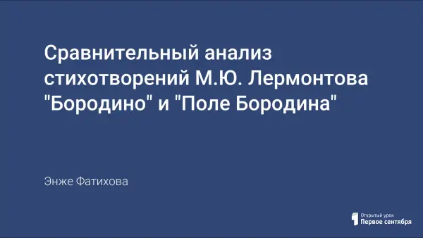 Цель урока: используя прием сравнительного анализа, раскрыть существенную разницу между двумя стихотворениями и подвести учащихся к пониманию главной мысли "Бородина".
