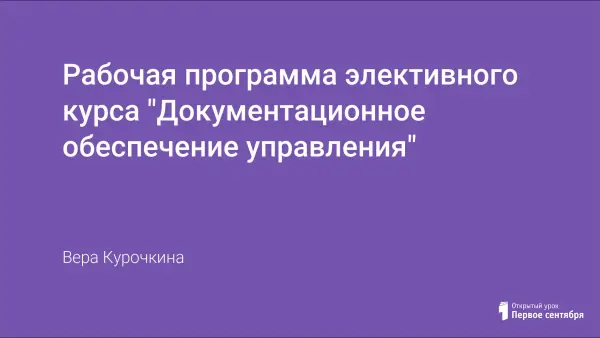 Основная цель элективного курса "Документационное обеспечение управления" - изучить теоретические и практические основы документационного обеспечения управления, сформировать у учащихся практические навыки документирования на основе современных требований, предъявляемых к составлению и оформлению управленческих документов; ориентировать учащихся на решение проблем управления документацией в современных управленческих структурах.