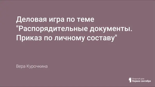Представленная деловая игра по теме "Распорядительные документы. Приказ по личному составу" соответствует учебной программе элективного курса "Документационное обеспечение управления". Целью деловой игры "Отдел кадров" является обобщение знаний и закрепление навыка составления и оформления приказов по личному составу.