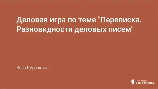 Представленная деловая игра по теме "Переписка. Разновидности деловых писем" соответствует учебной программе элективного курса "Документационное обеспечение управления". Целью деловой игры "Вам письмо..." является обобщение знаний и закрепление навыка составления и оформления деловых писем.