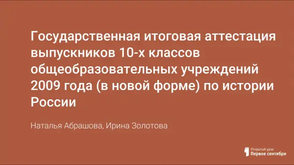 Государственная итоговая аттестация выпускников 10-х классов общеобразовательных учреждений 2009 года (в новой форме) по истории России