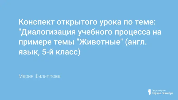 Открытый урок по теме «Диалогизация педагогического процесса» на примере темы «Животные», целью которого является формирование навыка интонирования специальных вопросов и кратких ответов.