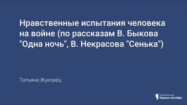 Урок литературы посвящен нравственным испытаниям человека на войне на примере рассказов В. Быкова «Одна ночь» и В. Некрасова «Сенька».