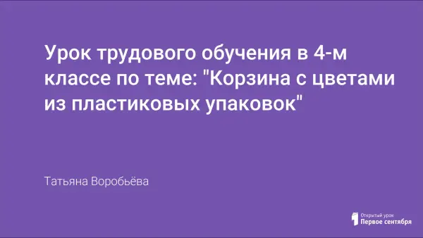 На уроках трудового обучения много интересного можно сделать из так называемых бросовых материалов и при этом с успехом решать задачи познавательной и творческой направленности работы учеников. Важно, чтобы учащиеся поняли, что каждая ненужная вещь, над которой уже трудился человек, может для чего-нибудь пригодиться и в некоторых работах заменить бумагу и картон, природные материалы и ткань; в результате несложной обработки бросовые материалы могут превратиться в интересные поделки. Предлагаемый урок трудового обучения могут использовать в своей работе учителя четвёртых классов четырёхлетней начальной школы, работающие по программе трудового обучения автора Т.Геронимус "Школа мастеров".