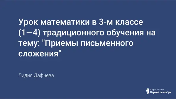 Цели урока: научить письменным приёмам сложения чисел в пределах 1000; совершенствовать навыки устных вычислений, решения задач; развивать мышление, познавательный интерес к предмету; воспитывать чувство ответственности, коллективизма.