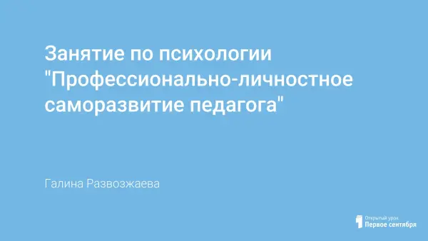 Цель занятия: поиск путей "ресурсного" обеспечения профессионально-личностного саморазвития учителя.