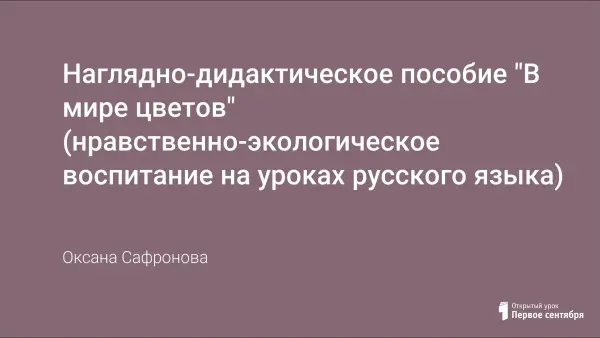 Предлагаемая вашему вниманию работа "В мире цветов" представляет собой систематизированный набор текстов - упражнений для работы с учащимися 9-го класса в начале учебного года при повторении изученного в 5—8-го классах.