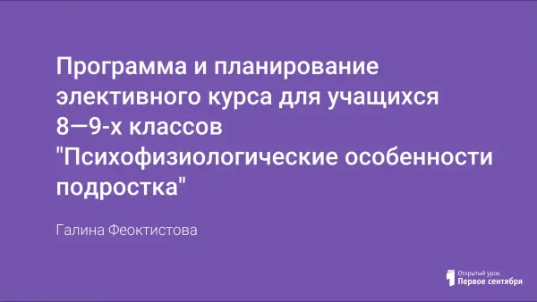 Данный курс предназначен для изучения подростками вопросов психологии и физиологии. Актуальность курса велика, так как он позволит подросткам изучить самих себя, узнать свои недостатки, научиться бороться с ними, понять причины проблем в отношениях с родителями, учителями, ровесниками, уметь прощать обиду.