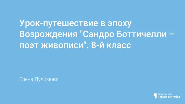 Урок-путешествие в эпоху Возрождения "Сандро Боттичелли – поэт живописи". 8-й класс