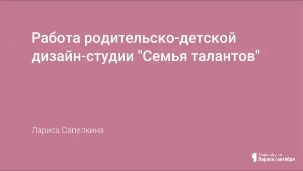 В материале представлены конспекты мастер-классов родительско-детской дизайн-студии "Семья талантов". Практическая направленность публикаций особенно привлекает педагога. Ведь это хороший стимул к творчеству. Так меня вдохновил материал авторов фестиваля 2005-2006 г.