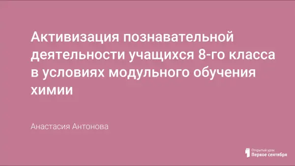Я освещаю тему «Активизация познавательной деятельности учащихся 8-го класса в условиях модульного обучения химии».