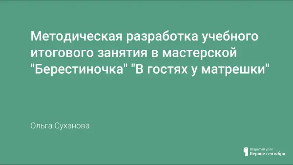 Урок является итоговым по теме «Овладение мастерством изготовления изделий из берестяного пласта». Чтобы урок получился интересным и запоминающимся, мы пригласили к нам в гости родителей, педагогов ДДТ, учителей начальных классов, воспитателей детских садов нашего города. На занятии раскрывается история изготовления национальной русской игрушки «Матрешка».