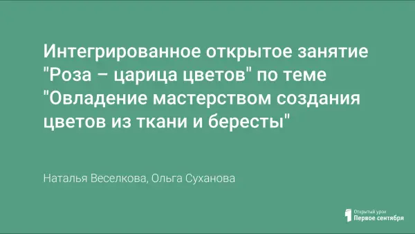 Цель занятия: расширить творческие возможности учащихся через интеграцию различных видов декоративно-прикладного творчества. В практической части занятия девочки собирают розы из подготовленных на предыдущих занятиях деталей. Материал для создания цветов - береста и нажелатиненная ткань.