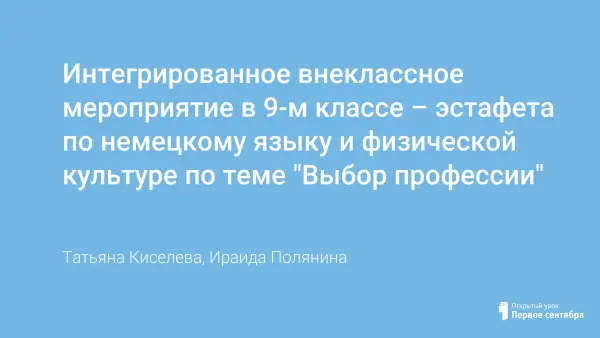 Представлен конспект интегрированного внеклассного мероприятия-эстафеты по немецкому языку и физической культуре для учащихся 9-го класса по теме "Выбор профессии".