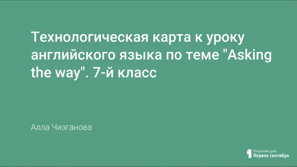 Представлена технологическая карта к уроку английского языка по теме "Asking the way" для 7-го класса.