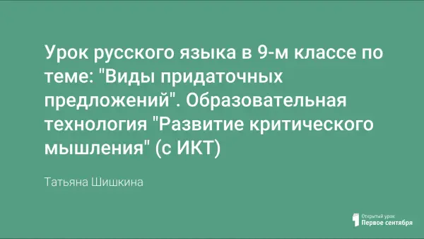 Урок-обобщение по теме "Виды придаточных предложений" по программе, созданной творческим коллективом под редакцией В.В. Бабайцевой, является заключительным в большом и важном разделе "Сложноподчиненные предложения" курса русского языка 9-го класса. Вариативность программ, учебно-методических комплексов в преподавании русского языка, с одной стороны, и новые формы итоговой аттестации — с другой, требуют от выпускников основной общей школы знания разнообразных подходов к языковым явлениям, знакомства с различными классификациями и понимания механизма их создания.