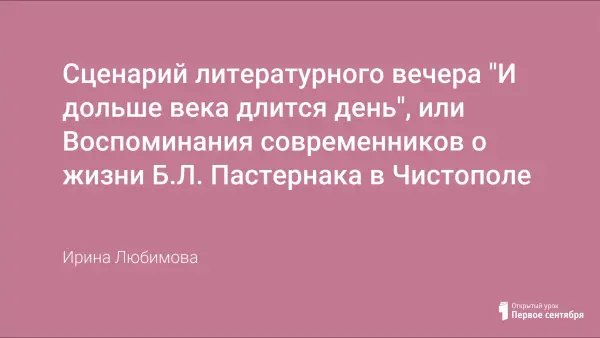 Б.Л.Пастернак жил в городе Чистополе во время войны, "пробовал выражать себя в разных направлениях, но всякий раз с той долей правды и дельности", которую считал для себя обязательной, "привез с собой чувство предвиденности и знаковости всего случившегося и личную ноту недовольства собой...". Чтобы понять жизнь поэта, обратимся к истории, архивным документам, воспоминаниям тех, кто видел Пастернака в Чистополе, общался, переписывался с ним...