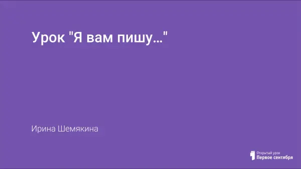 "Я вам пишу...". Почему я так назвала урок? Мне кажется, уже в самом названии урока звучит интрига: а о чем же этот урок? - гадают ученики. Тема доведена до учащихся посредством письма Татьяны из романа "Евгений Онегин", что даёт опережающий эффект, как бы знакомит с тем, что им предстоит в будущем. Далее доводится плавно и цель урока: показать практическую значимость знаний. Ведь для того чтобы написать даже небольшое письмо, необходимо много знать.