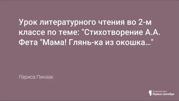 Урок литературного чтения во 2-м классе по теме: "Стихотворение А.А. Фета "Мама! Глянь-ка из окошка…"