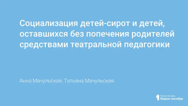 Социализация детей-сирот и детей, оставшихся без попечения родителей средствами театральной педагогики