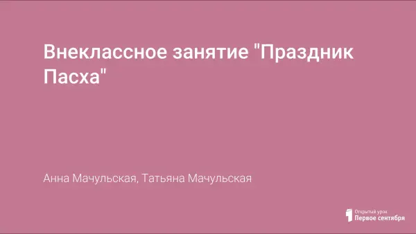 Религиозные праздники всегда занимали важное место в жизни народа. Приведённая разработка занятия создана на базе общеизвестного праздника народного календаря - Пасха. Структура разработки содержит экскурс в историю праздника. Цель данного занятия: формирование у подрастающего поколения интереса к истории православной культуры нашей Родины.