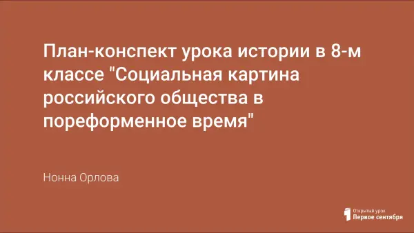 В статье представлен опыт работы по изучению темы "Социальная картина российского общества в пореформенное время" в курсе отечественной истории 8-го класса.