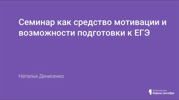 Семинар – важное средство мотивации учения и возможности подготовки к ЕГЭ для учащихся 10–11-х классов. Может быть полезно тем, кто хотел бы провести свое исследование мотивационной сферы личности учащихся. В работе затронуты не только методические, но и психологические аспекты деятельности учителя по управлению процессом обучения.