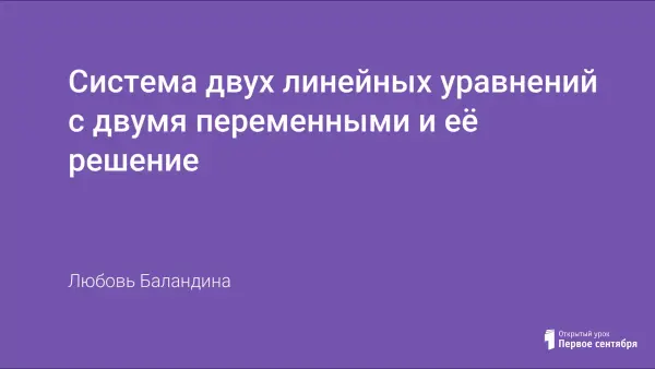 К уроку по теме "Система двух линейных уравнений с двумя переменными и её решение" подготовлена презентация.