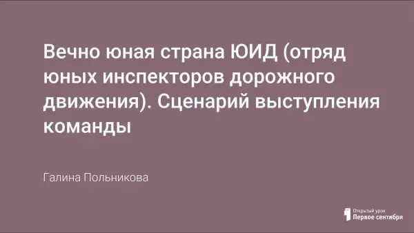 Представлен сценарий выступления команды юных инспекторов дорожного движения . Вечно юная страна ЮИД.