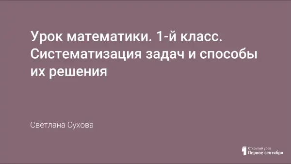Урок систематизирует все виды изученных задач в 1-м классе, формирует умение самостоятельно делать анализ задачи; разнообразные виды заданий развивают мышление, речь, внимание.