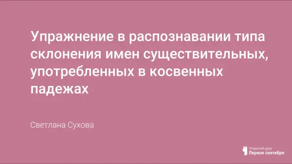 В статье представлен конспект урока по русскому языку, на котором учащиеся выводят алгоритм определения типа склонения у имен существительных в косвенных падежах; урок направлен на развитие интеллектуальных возможностей; на совершенствование речевой деятельности учащихся.