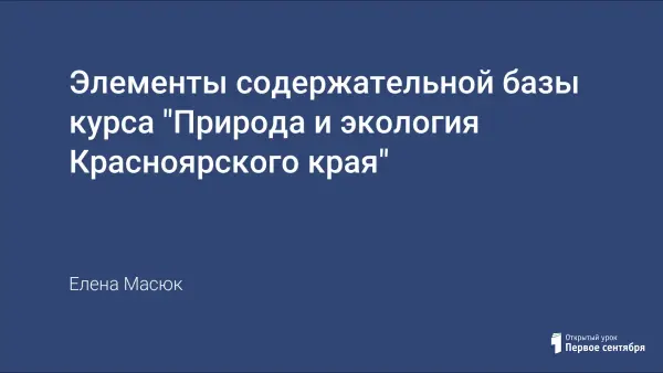 Региональный компонент базисного плана в Красноярском крае включает в себя курс "Природа и экология Красноярского края". Создание учебно-методического комплекса находится в подготовительной стадии. Отсюда вытекает необходимость в разработке содержательной части курса, методики преподавания, системы оценки знаний. В своей работе я предлагаю материал, который является содержательной базой одного из уроков курса "Природа и экология Красноярского края".