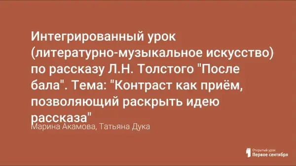 Интегрированный урок (литературно-музыкальное искусство) по рассказу Л.Н. Толстого "После бала". Тема: "Контраст как приём, позволяющий раскрыть идею рассказа"