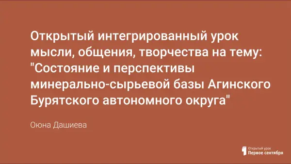 Открытый интегрированный урок мысли, общения, творчества на тему: "Состояние и перспективы минерально-сырьевой базы Агинского Бурятского автономного округа"