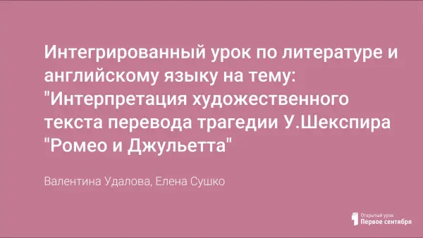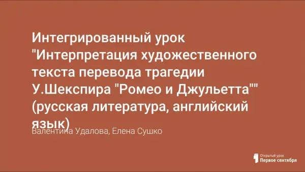 Интегрированный урок "Интерпретация художественного текста перевода трагедии У.Шекспира "Ромео и Джульетта"" (русская литература, английский язык)