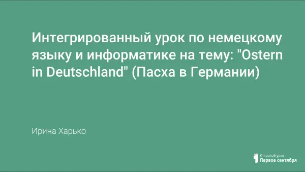 Много прекрасных традиций и обрядов существует у каждого народа во всем мире. И среди них, конечно же, праздники. С одним из замечательных немецких праздников - Пасхой - знакомит вас автор интегрированного урока немецкий язык + информатика по теме "Пасха в Германии". Данная информация может быть использована как на уроке, так и во внеклассной работе по предмету.