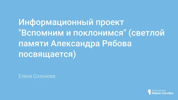 Цель урока: изучить жизненный путь Рябова Александра Николаевича, погибшего при исполнении военных обязанностей в Республике Чечня, в рамках акции, посвященной 65-летию Победы в Великой Отечественной войне.