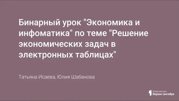 Бинарный урок "Экономика и инфоматика" по теме "Решение экономических задач в электронных таблицах"