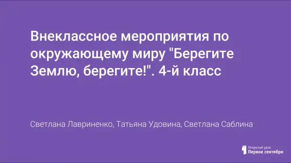 Внеклассное мероприятия по окружающему миру "Берегите Землю, берегите!". 4-й класс