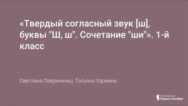 «Твердый согласный звук [ш], буквы "Ш, ш". Сочетание "ши"». 1-й класс