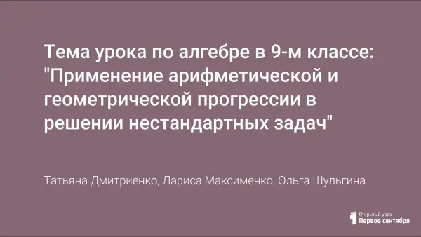 Тема урока по алгебре в 9-м классе: "Применение арифметической и геометрической прогрессии в решении нестандартных задач"