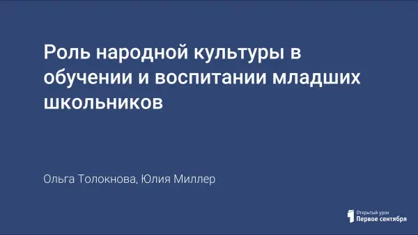Рассматриваемая тема «Роль народной культуры в обучении и воспитании школьников» является актуальной, так как народная культура воздействует на формирование качеств, особенностей мышления, стереотипов поведения, способствует адекватности социально-этнического самоопределения личности ребёнка. Народная культура выполняет познавательную, развивающую, развлекающую, диагностирующую, корректирующую и другие функции, она может служить одним из средств, приобщения детей к народным традициям. Что, в свою очередь, представляет важнейший аспект воспитания духовности, формирования системы нравственно-эстетических, общечеловеческих ценностей.