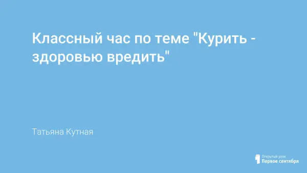 В прошлом году вместе с шестым классом мы подготовили и провели классный час "Курить - здоровью вредить". Так как ребята 12—13 лет достаточно скептически относятся к любой информации, то работу на этом классном часе предлагалось строить на сочетании теоретического материала и практической деятельности учащихся.