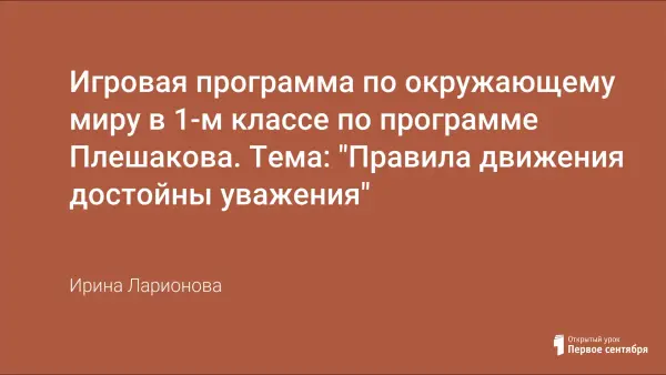 Урок проходит в необычной форме — в виде игровой программы, где приходят сказочные герои Кот, Помеха-Неумеха и сотрудник ДПС, которые учат ребят при помощи игры правилам дорожного движения.